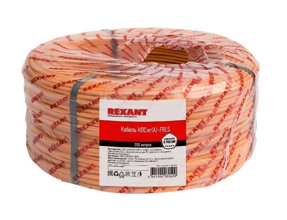 Кабель КПСнг(А)-FRLS 1x2x0,20мм² 200м (01-4900), симметричной парной скрутки, огнестойкий, не распространяющий горение при групповой прокладке, с пониженным дымо- и газовыделением. Состоит из однопроволочного медного проводника, изоляции из огнестойкой керамизирующейся кремнийорганической резины, дренажного медного проводника и оболочки из ПВХ пластиката с пониженным дымо- и газовыделением. Сохраняет работоспособность в условиях пожара в течение 180 минут. Номинальное напряжение тока до 300 В, частотой 50 Гц. Применяется для одиночной или групповой прокладки (с учетом объема горючей загрузки) цепей питания электроприемников систем противопожарной защиты, операционных и реанимационно-анестезионного оборудования больниц и стационаров, а также в других важных системах жизнеобеспечения, которые должны сохранять работоспособность в условиях пожара.