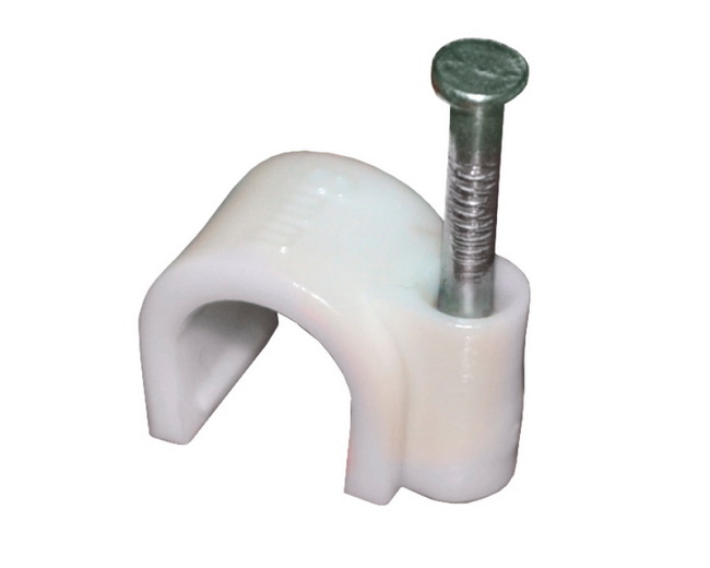Крепеж кабеля круглый 10мм (упак. 50 шт.) (07-4010). Представляет собой дугообразную пластиковую скобу диаметром 10 мм с гвоздём.