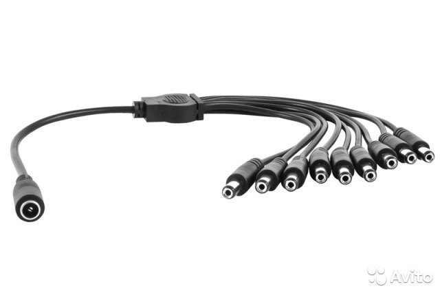 Разветвитель питания на 9 Разъемов (14-0317). Длина провода адаптера 46 см (расстояние от джека до разветвителя17,5см+разветвитель 3,5+от разветвителя до штекера 25 см. Цвет черный.