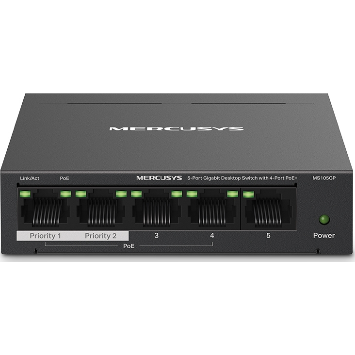Настольный коммутатор с 5 гигабитными портами (4 порта PoE+). Гигабитные порты: пять портов RJ45 10/100/1000 Мбит/с. Четыре порта PoE+: позволят подавать питание и передавать данные по одному кабелю. Бюджет PoE: бюджет на один порт составляет 30 Вт, а общий бюджет — 65 Вт. Режим увеличения дальности: позволит увеличить дальность передачи до 250 метров. Режим изоляции: позволяет одним нажатием разделить клиентский трафик для повышения безопасности и производительности. Совместимость: работает с питаемыми устройствами, поддерживающими стандарты IEEE 802.3af/at. Прочный корпус из металла: обеспечивает эффективное рассеивание тепла и долгий срок службы. Plug and Play: не требуется предварительная настройка.