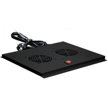 Вентиляторный модуль на 2 элемента потолочный для напольных шкафов с глубиной — 347 мм. Цвет — Ral 9005 - черный. Масса нетто — 2.3 кг