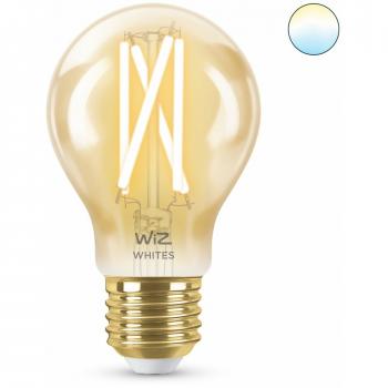 Желтая лампа накаливания на 6,7 Вт (экв. 50 Вт), A60, цоколь E27. Регулируемый белый свет. Стекло. Мгновенная готовность к использованию. Управление из приложения WiZ или голосом