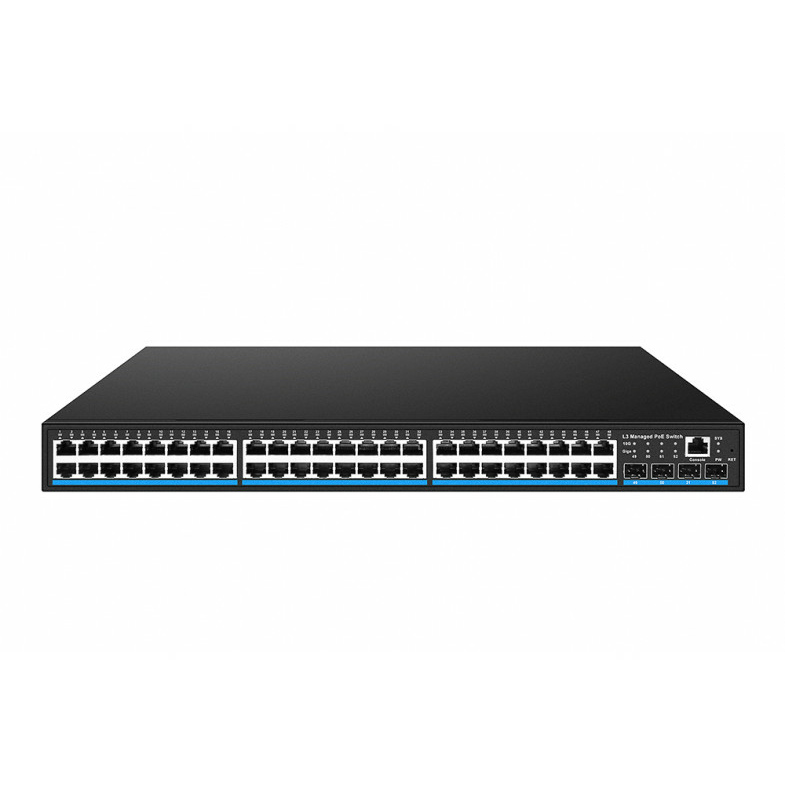 Управляемый L3 PoE коммутатор на 48xGE RJ-45 c PoE + 4х10G SFP+ порта. Порты: 4 x GE (10/100/1000 Base-T) с PoE (до 90W, A+B) + 44 x GE (10/100/1000 Base-T) с поддержкой PoE (IEEE 802.3af/at), 4 x 10G SFP+ Uplink., Консольный порт. Соответствует стандартам PoE IEEE 802.3af/at/bt. Автоматическое определение и режим антизависания PoE устройств. Мощность PoE на порт - до 30W. Суммарная мощность PoE до 700W. Поддержка режима CCTV: Увеличение расстояния передачи данных и питания до 250м, изоляция портов (VLAN). Встроенная грозозащита 3kV на порт. Питание: AC90-253V (800W). Встроенный БП. Монтаж в 19 - дюймовую стойку, крепление в комплекте. Размеры (ШхВхГ): 440x45x360мм. Рабочая температура: -20…+55°С.