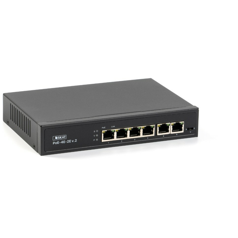 Коммутатор PoE Plus, мощность 65Вт, порты: 4-Ethernet, 2-Uplink. POE WATCHDOG: автоматическое определение потока данных, если данные перестают поступать коммутатор перезагружает порт. Hi-PoE: первый и второй порт могут выводить Hi-PoE – 60 Вт. Стандарт PoE: IEEE802.3af / на PoE++ / Hi-POE, поддерживает стандартное обнаружение всех портов. Поддержка питания для устройств PoE, таких как точки доступа и камеры видеонаблюдения, подключенных по кабелям Ethernet Cat 5e/6. Поддержка функции автоматического определения типа кабеля прямой/перекрещенный (MDI/MDIX). Грозозащита 3 кВ. Максимальная мощность на порт 30 Вт Отсутствие необходимости настройки перед использованием Индикация позволяет отслеживать рабочее состояние и помогает анализировать неисправности.