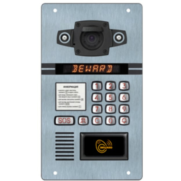 1,3 Мп, сменный модуль SONY Exmor, объектив 2.7 мм на выбор, SIP-протокол, ИК-подсветка (до 10 м), дуплекс аудио, RFID Mifare SL3, Wiegand/RS-485, антивандальное исполнение, от -50 до +60°С, IP66.