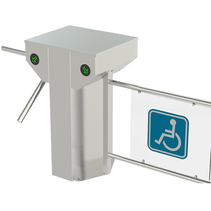 Турникет-калитка для МГН моторизованная SALOON 605. Корпус и преграды - нержавеющая сталь AISI 304. Оснащена платой управления и светодиодными указателями прохода и направления. Сервопозиционный электропривод створки с определением препятствий и автоматической разблокировкой при отключении электроэнергии. Створка 900 мм с информационной вставкой. Время открытия 2.2 сек. Встроенный блок питания. IP54.