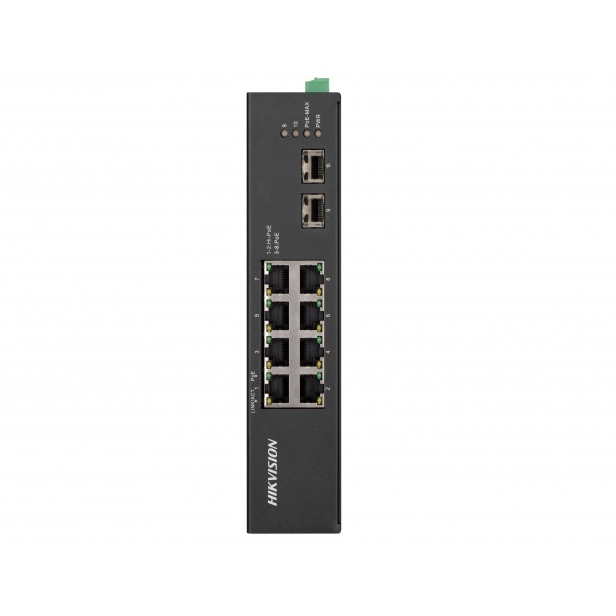 Неуправляемый, 6 RJ45 1000M PoE с грозозащитой 6кВ; 2 1000M порт поддерживает HiPoE 60Вт, 2 1000М SFP порта; бюджет PoE 110Вт; поддержка режима передачи до 300м, таблица MAC адресов на 4000 записей; пропускная способность 20Гб/с; 48-57 VDC, 2.5 A; -30°C...+65°C.