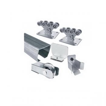 Комплект для ворот до 350 кг, с балкой 6 м. Состав комплекта: 1710019. Тележка SE с 8 роликами (2шт.), ролик концевой, улавливатель конц. ролика, заглушка для рельса (2шт.), скоба направляющая FRS 2 с 2 роликами, винты М10х25 (15шт.). 1700002 Рельс направляющий "S", неоцинкованный.