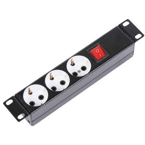 Блок силовых розеток 10" без шнура с выключателем, 3 розетки. Предназначен для размещения в 10” шкафах. Розетки расположены горизонтально, для удобного подсоединения коленчатых штекеров. На лицевой части блока установлен выключатель. Цвет – RAL 9005 (черный), порошково-полимерное покрытие с предварительным фосфатированием. Поставляется в индивидуальной упаковке, кабель питания в комплект поставки не входит.