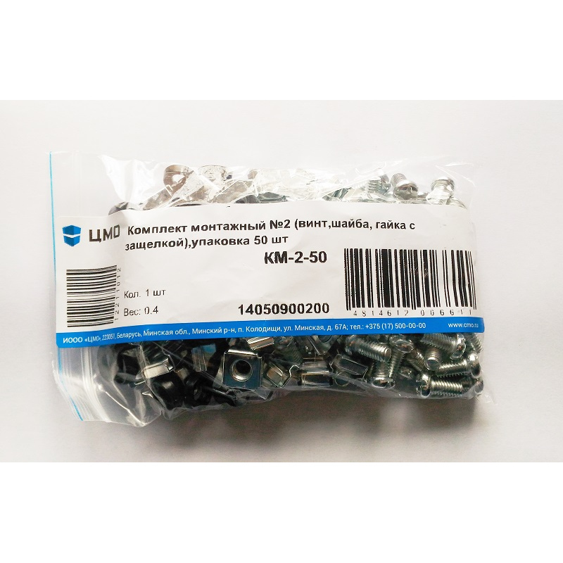 Комплект монтажный № 2 (винт, шайба, гайка с защелкой), упаковка 50 шт. Вес изделия, кг 0.4.