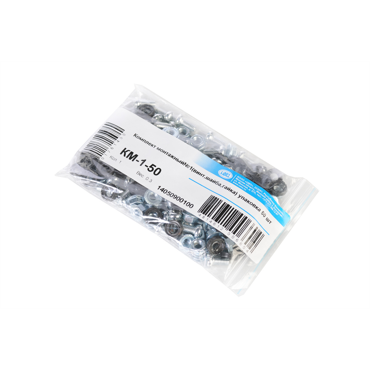 Комплект монтажный № 1 (винт, шайба, гайка), упаковка 50 шт. Вес изделия, кг 0.3.