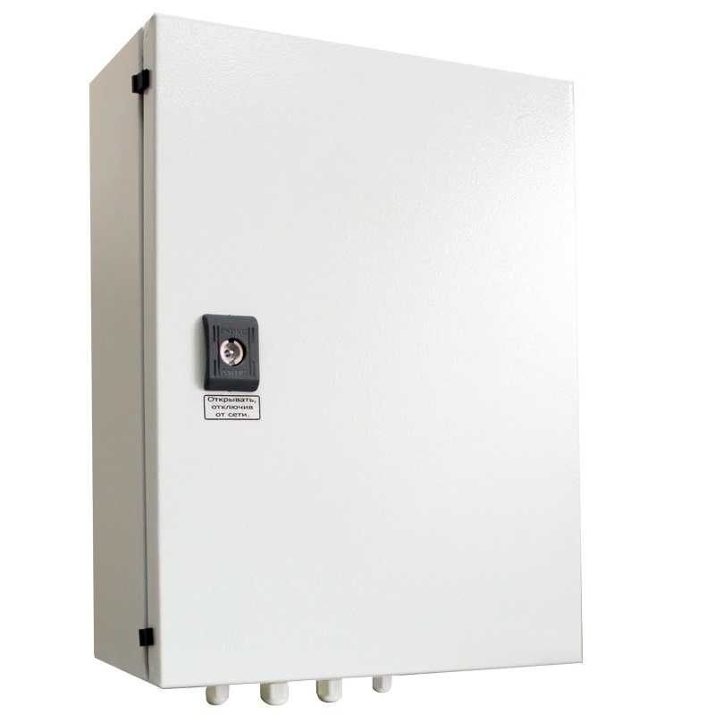 ИБП уличное исполнение, класс защиты IP65, металлический корпус, регулируемый ток заряда АКБ, термокомпенсация тока заряда АКБ. АКБ — внешние, 2 шт. от 17 до 250 Ач, 5 информационных выходов о состоянии источника. Электронная защита от перегрева, КЗ выхода и АКБ. Кнопка отключения нагрузки. Диапазон входного напряжения — 170–250 В. Рабочий температурный диапазон — от - 40°С до + 50°С. Мембранный кабельный ввод, замки на дверце.