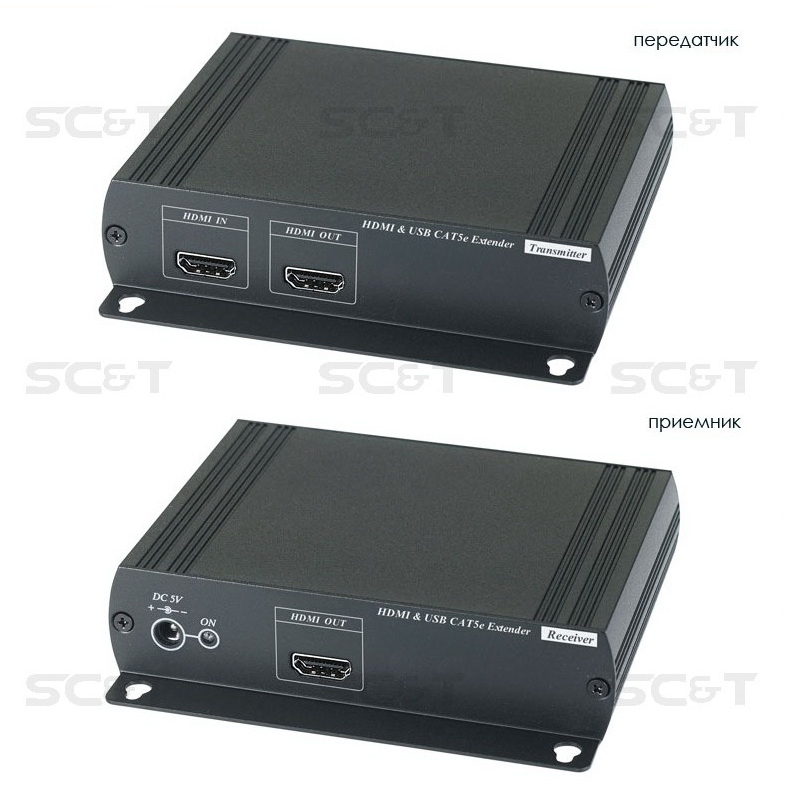HDMI KVM удлинитель (комплект приёмник + передатчик) по Ethernet до 120м (CAT5e). Позволяет передавать HDMI (1.3b, 1080p и 1920x1200 (WUXGA), 60Гц), и USB 2.0 (2 порта). Можно использовать совместно с SR01 для увеличения расстояния (без ограничения по количеству). Устройство предназначено для работы с PC и регистраторами на базе ОС Windows/Linux с драйверами для работы USB-хаба. Передатчик: Вх. - HDMI(A)/Роз.2,5х5,5мм(DC5V). Вых. - HDMI(A)/USB(B)/RJ45. Приёмник: Вх. - USB(A)x2/Роз.2,5х5,5мм(DC5V)/RJ45. Вых. - HDMI(A). В комплекте БП DC5V(2А) - 2шт. Размеры: 125x140x30мм (каждого устройства). Рабочая температура -40…+55°С.
