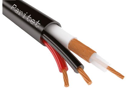 Кабель с коаксиальным (рк75-2-13м) проводником и 2 жилами для питания с внешней полиэтиленовой изоляцией, D-внешний = 6,9 мм, сечение жил = 0,5 кв. мм (для внешней прокладки)