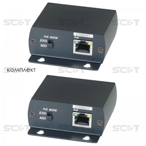 Комплект (передатчик + приёмник) для передачи сигнала Ethernet и питания (PoE) по коаксиальному кабелю RG6 до 300м. Позволяет использовать коаксиальную кабельную инфраструктуру для подключения IP-камер. Максимальная мощность на выходе: 300м/15W, 200м/18W, 100м/20W. Поддержка стандартов IEEE802.3at/af. Поддерживает Ethernet 10/100Мбит/с. Передатчик: вх. - RJ45; вых. - BNC. Приёмник: вх. - BNC; вых. - RJ45. Питание от источника PoE. Размеры (каждого устройства): 67x87x27мм. Рабочая температура - 40 + 55°C .