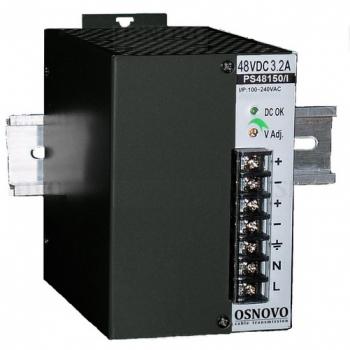 Промышленный блок питания. Устройство имеет 1 выход DC48V, 3.2A (150W). Диапазон входных напряжений лежит в пределах AC100-240V. КПД данной модели составляет 83%. Среди особенностей стоит отметить наличие защиты от короткого замыкания, перенапряжения и перегрузки. Так же имеется конвекционное охлаждение. Блок питания предназначен для монтажа на DIN-рейку или стену. Размер 121x110x75 мм. Рабочая температура -40...+70°C.